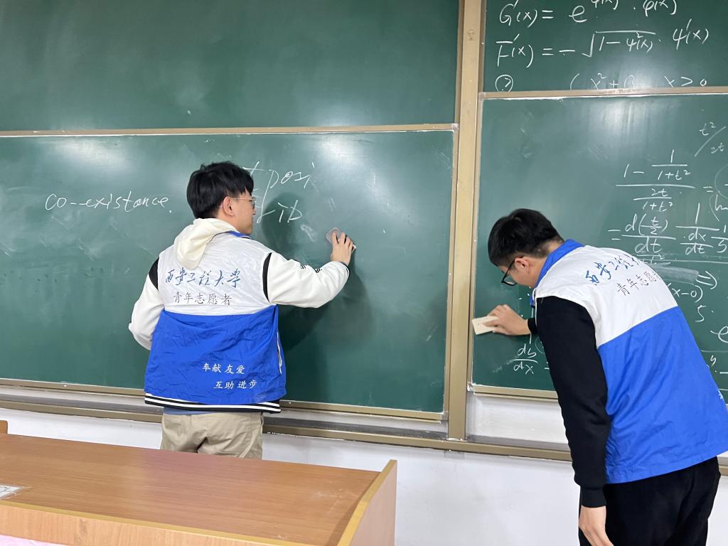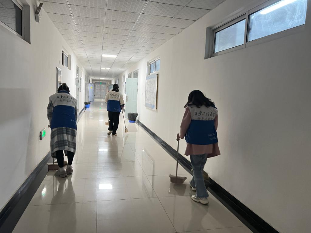 公司团总支书记贾天昱对此次活动的开展进行了详细安排与分工,志愿者们在教室、实验室等区域做了垃圾清理、消除粉尘等工作,志愿者们分工明确,不怕脏不怕累,积极主动地投身于校园清洁的活动中。