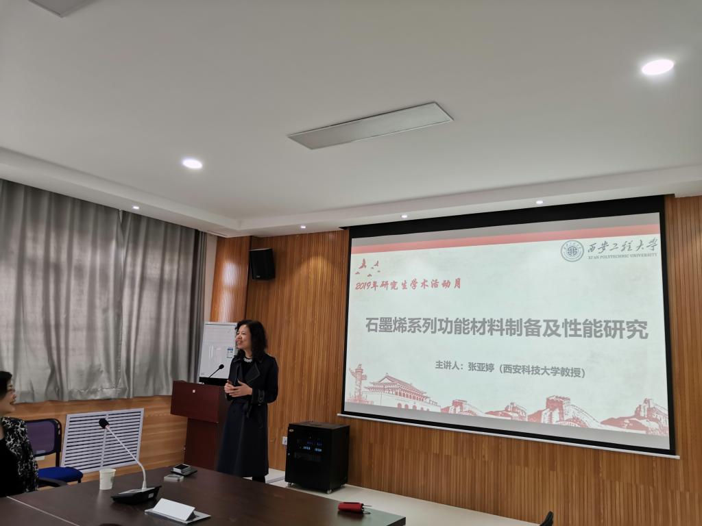 2019年11月7日下午,环化公司在507会议室举办了2019年研究生学术活动月活动,邀请西安科技大学教授张亚婷作了题为“石墨烯系列功能材料制备及性能研究”的学术报告。环化公司研一、研二员工参加了本次报告,报告会由公司副经理常薇主持。