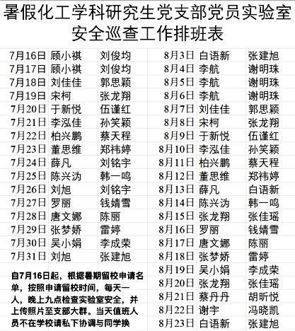 本次暑期巡查工作有效展现了新时代青年党员的责任担当,为营造安全、和谐、高效的科研环境贡献了青春力量。化工学科研究生党支部将继续扎实推进实验室安全巡查常态化,为公司科研工作高质量发展保驾护航。