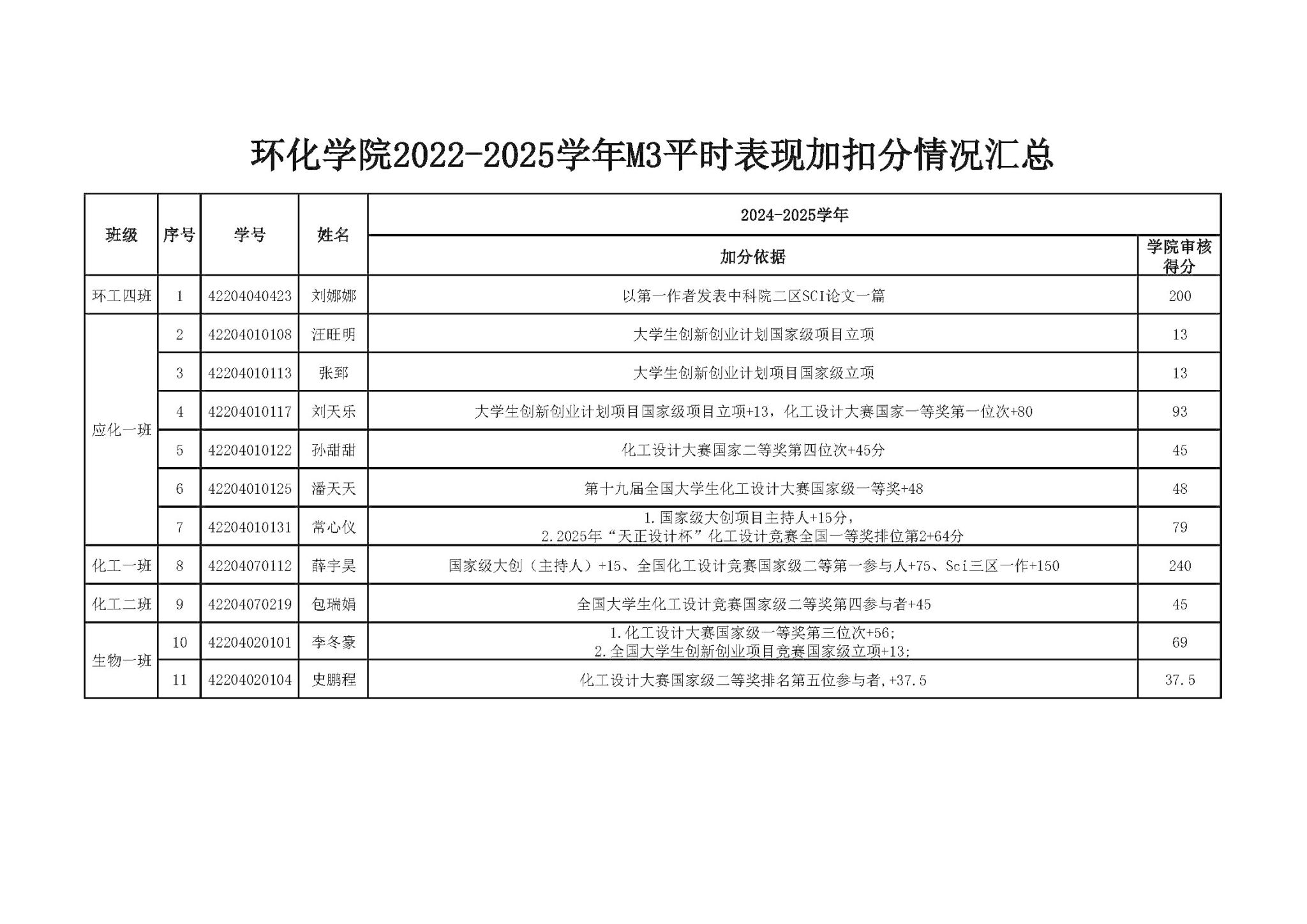 2022级2022-2025学年M3平时表现加扣分公示