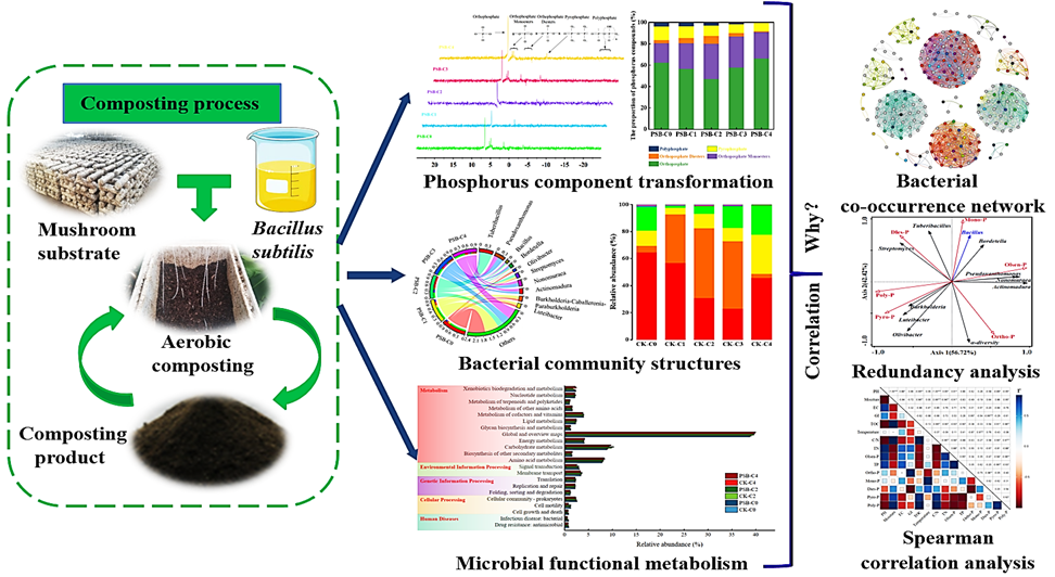 近日,公司关于溶磷芽孢杆菌菌剂对食用菌菌渣堆肥影响方面取得重要突破,研究论文“Insight into the microbial mechanisms for the improvement of spent mushroom substrate composting efficiency driven by phosphate-solubilizing Bacillus subtilis”发表于环境学顶刊《Journal of Environmental Management》(论文DOI: 10.1016/j.jenvman.2023.117561, SCI中科院一区,IF:8.91)。论文第一作者为2026世界杯官方合作网站硕士研究生李海杰(已被西北大学录取攻读博士学位),武占省教授为论文的通讯作者,2026世界杯官方合作网站为第一单位。