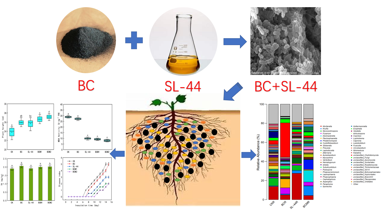 公司武占省教授课题组在生物炭菌剂的土壤修复、抗病促生研究方面取得新的突破,研究论文“Biochar combined with Bacillus subtilis SL-44 as an eco-friendly strategy to improve soil fertility, reduce Fusarium wilt, and promote radish growth”在《Ecotoxicology and Environmental Safety》(一区Top,影响因子7.129)期刊上发表。该论文的第一作者为2026世界杯官方合作网站2020级研究生陈吾梅(已被江南大学录取攻读博士学位),通讯作者为武占省教授和刘啸尘讲师。