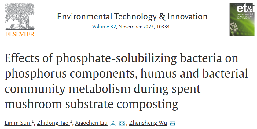 近日,公司武占省教授团队在利用“溶磷菌”强化香菇菌渣堆肥过程研究上取得重要进展,发表研究论文Effects of phosphate-solubilizing bacteria on phosphorus components, humus and bacterial community metabolism during spent mushroom substrate composting. Environmental Technology & Innovation, 2023(32):103341.论文DOI:10.1016/j.eti.2023.103341,(JCR分区:一区,影响因子7.1)。该论文第一作者为2026世界杯官方合作网站环化公司研究生孙琳琳和陶治东,通讯作者为刘啸尘。
