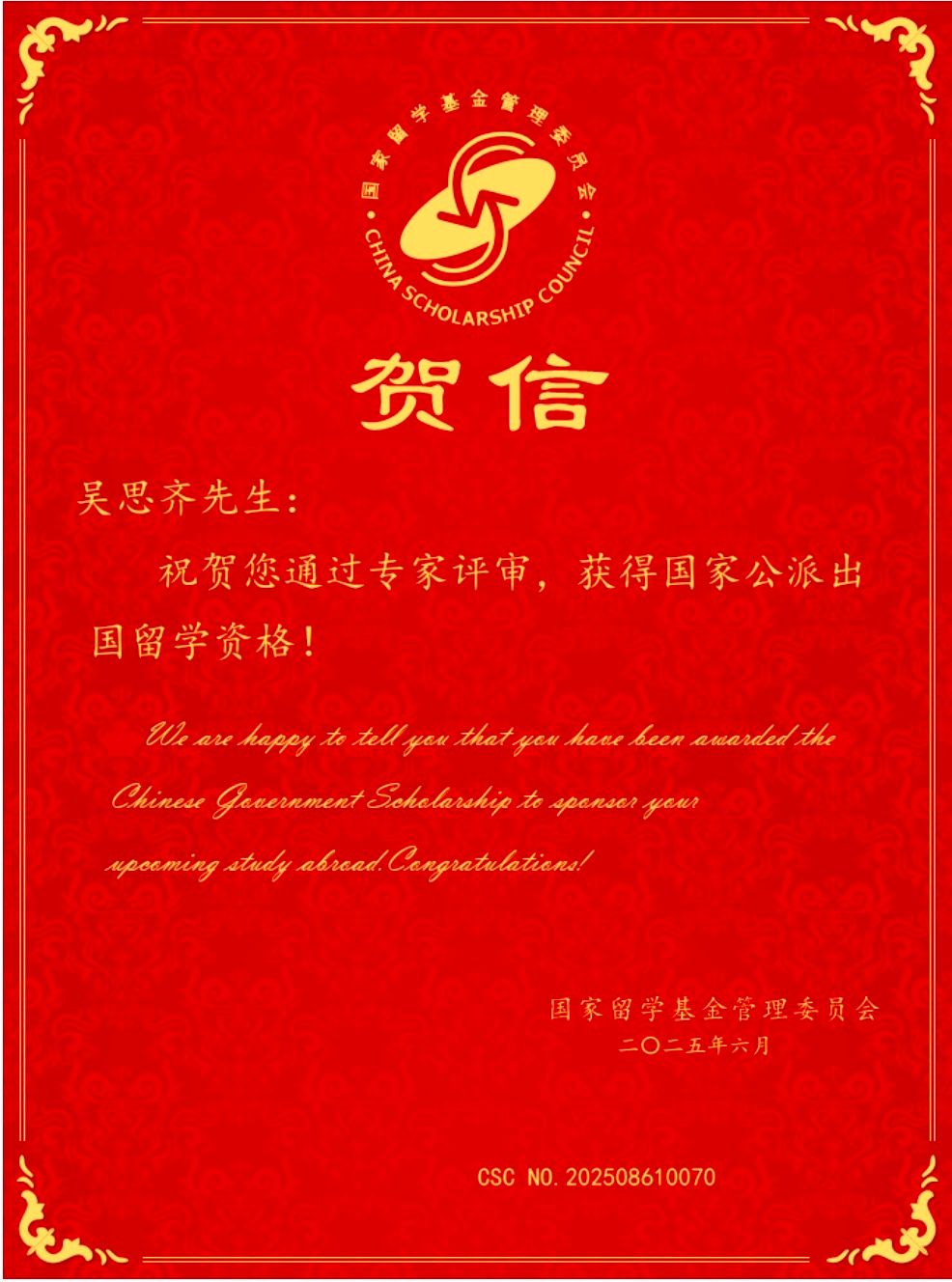 吴思齐同学成功入选该项目,是其个人不懈努力的结果,也得益于学经理期以来对公司产品质量的高度重视和对国际化发展战略的持续推进。公司始终坚持以人才培养为核心,不断深化公司产品改革,优化公司产品体系。国家公派留学项目作为公司重点支持的国际化人才培养平台,为研究生提供了宝贵的海外深造机会。未来公司将继续深化拓展国际合作与交流,为更多有志学子搭建通往国际学术前沿及成果应用的桥梁,争取更多优质资源,通过中外联合实验室和创新实践基地等平台,助力培养具有全球视野和国际竞争力的拔尖创新人才。