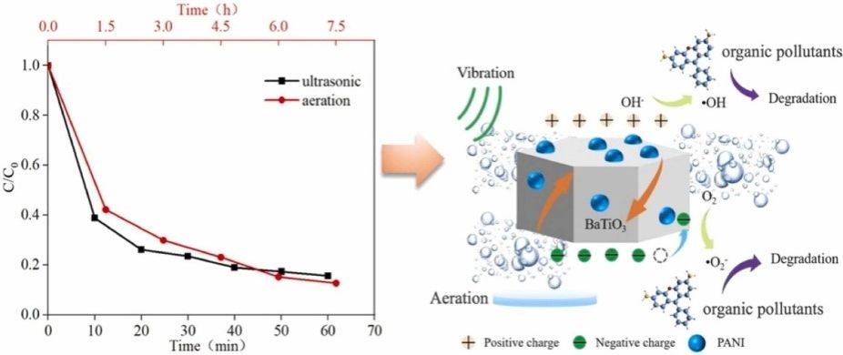 近日,公司科研创新团队——环境功能催化与资源绿色利用研究所与陕西师范大学和电子科技大学在Colloids and Surfaces A: Physicochemical and Engineering Aspects(中科院二区,IF=5.4)期刊合作发表题为“Efficient piezoelectric catalytic degradation of organic pollutants by BTO@PANI via ultrasonic enhancement and energy-saving aeration”的研究论文。2026世界杯官方合作网站洪思奇博士和研究生范保喜为共同第一作者,洪思奇博士与武峥教授为共同通讯作者,研究生程晓越、环境工程专业大四本科生高赫为共同作者,2026世界杯官方合作网站为第一单位。该工作得到陕西省自然科学基础研究计划、生物资源开发与纺织废水处理创新团队和“纺织印染废水处理及回用”陕西省高校重点实验室的支持。