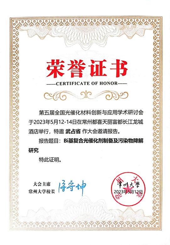 公司武占省教授、李云锋教授受邀参会,并分别在大会上作了题为“Bi基复合光催化剂制备及污染物降解研究”、“氮化物光催化剂的设计合成与性能研究”学术报告。此外,武占省教授作为会议特邀嘉宾主持分会场。会后,围绕着功能光催化材料的开发、碳循环、碳中和等方面和与会专家及代表进行了深入交流与讨论。