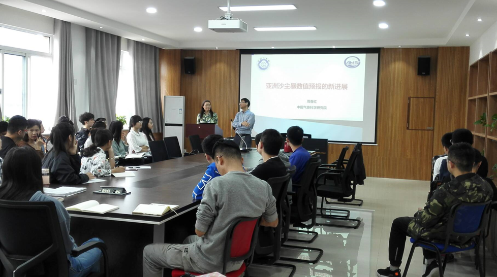 在报告会上,周春红研究员介绍了80多年来沙尘预报模式、化学天气预报模式的发展趋势、所涉及大气物理、物理化学过程及机理、天气模式与沙尘预报模式的嵌套、优化及模式检验及空、天、地观测系统等沙尘预报的方法的进步及基础机理的发展趋势。报告深入浅出,提高了师生对中国北方及亚洲地区沙尘发生的机理、过程的认识,拓展了师生的员工视野。