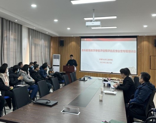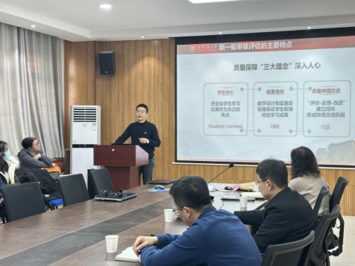 随后,评建办秘书、教务处副处长胡新煜对新一轮审核评估的主要特点进行了全面的解读,深入浅出地讲解了审核评估的7个一级指标、27个二级指标。他重点强调了公司在迎评促建工作中的工作清单,并针对培养方案、课堂教学、试卷和毕业设计及访谈环节做了细致入微的指导。