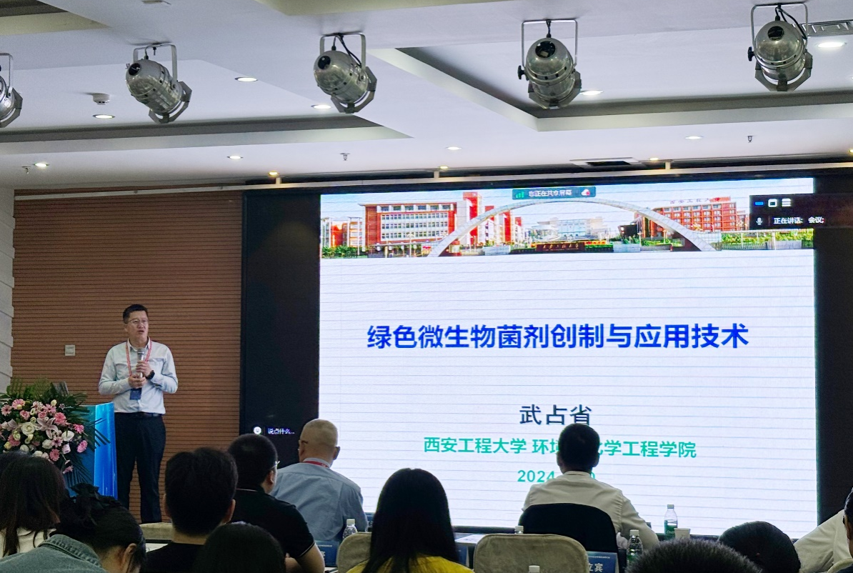 公司武占省教授、何艳慧副教授携课题组研究生薛倩文、陈吉、樊忠棣等同学共同参会。武占省教授受邀进行了题为“绿色微生物菌剂创制及其应用研究”的大会报告,分别对课题组的复合菌剂、生物炭、微胶囊菌剂等做了详细的工作成果介绍。