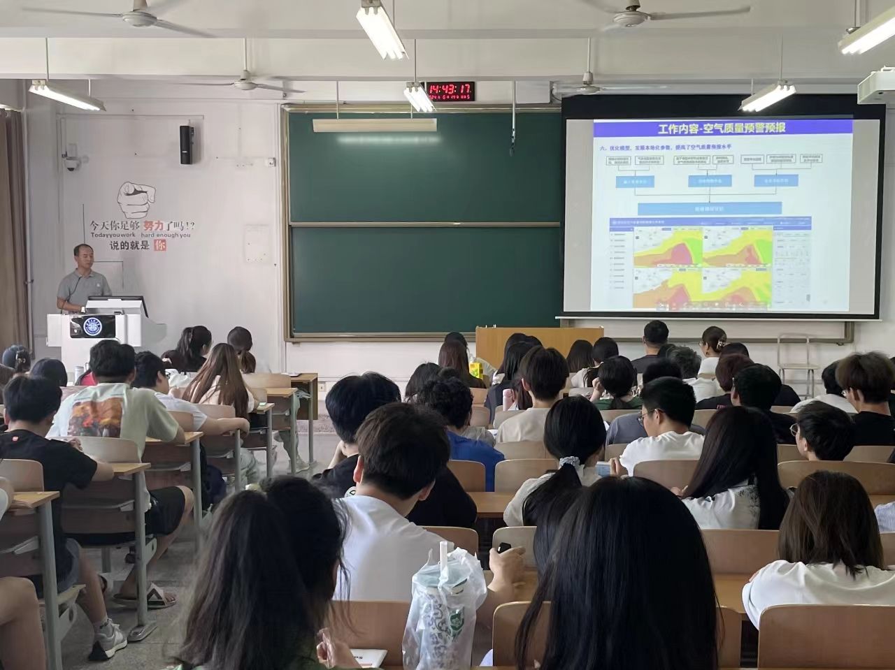 李建军研究员面向广老员工科普大气科学的相关知识,并对我国及关中地区的大气污染现状和原因进行介绍,他指出,自2013年《大气污染防治行动计划》(大气十条)实施以来,我国落实了严格的排放控制战略,通过加快产业结构、能源结构、交通运输结构和用地结构调整,使得主要的人为排放大气污染物(如SO2、CO、粉尘等)持续降低,空气质量得到显著改善。随后李建军研究员从个人科研角度对环境科学方面的学习和研究提出一些建议,从研究生导师角度分享了考研及面试方面的意见,他鼓励公司环境工程专业同学紧盯前沿领域,不断提高自身专业技能,努力成长为大数据时代背景下的复合型人才。会后,李建军研究员与现场师生进行了热烈互动,围绕就业、专业学习与个人发展等问题进行了交流探讨。