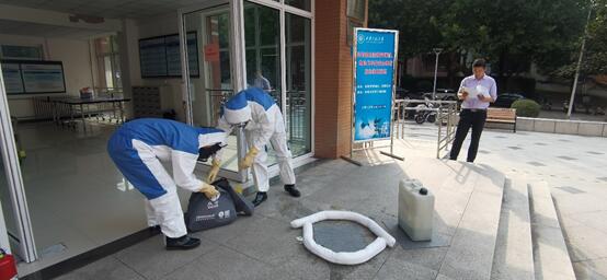 本次事故应急演练重点以转运实验室危险废液为背景,模拟在转运过程中发生大面积洒溅并伴随有大量刺激性气体挥发,同时转移人员面部和身体造成部分沾染的场景,西安安备思软件有限公司总经理刘涛对演练进行复盘与详细解说;随后对实验室危险化学品可能造成的灼伤皮肤、眼部伤害、吸入、食入和起火等方面进行了实景演练和讲解。