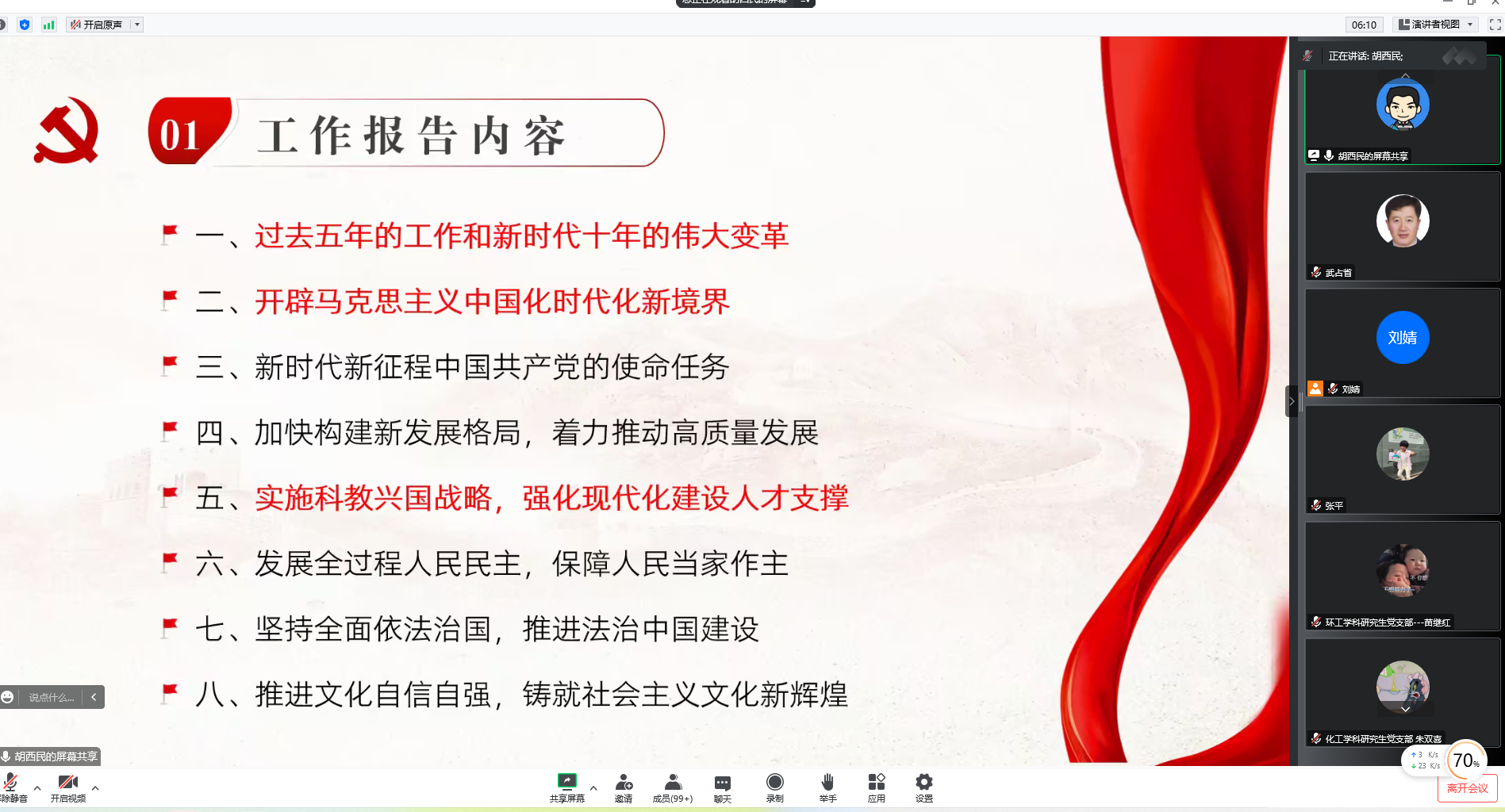 为了深入学习贯彻党的二十大精神,引导广大党员学深悟透党的二十大精神丰富内涵、核心要义与思想精髓,公司党委于11月15日上午10点举行学习贯彻党的二十大精神报告会。全院三百余名党员、预备党员、入党积极分子线上收看了报告会直播。