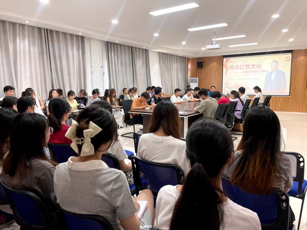 为庆祝中国共产党成立101周年,迎接党的二十大胜利召开,进一步激发公司新发展党员爱党爱国热情,引导党员进一步强化党性观念,7月7日下午,公司党委书记胡西民以“传承红色文化——以黄大年同志为榜样”为主题,为新发展预备党员讲授专题党课。本次党课由辅导员刘婧主持,全体62期预备党员聆听本次党课。