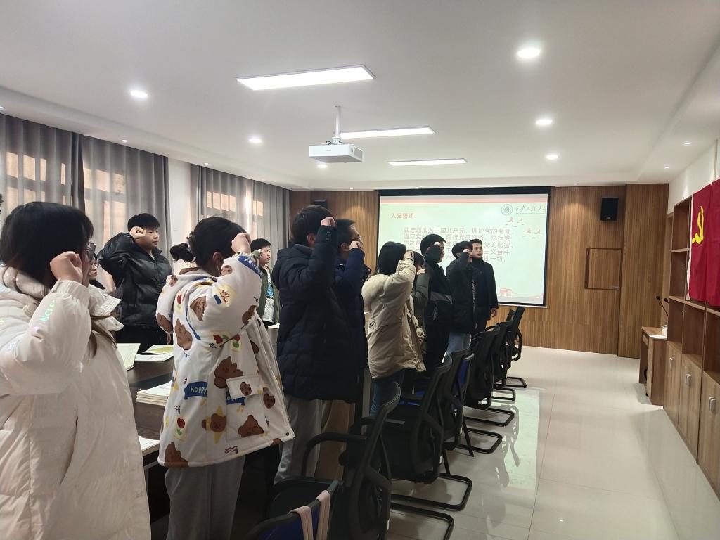 会议第五项,组织委员陈晓乾带领全体党员宣读入党誓词,会议在庄严的气氛中落下帷幕。