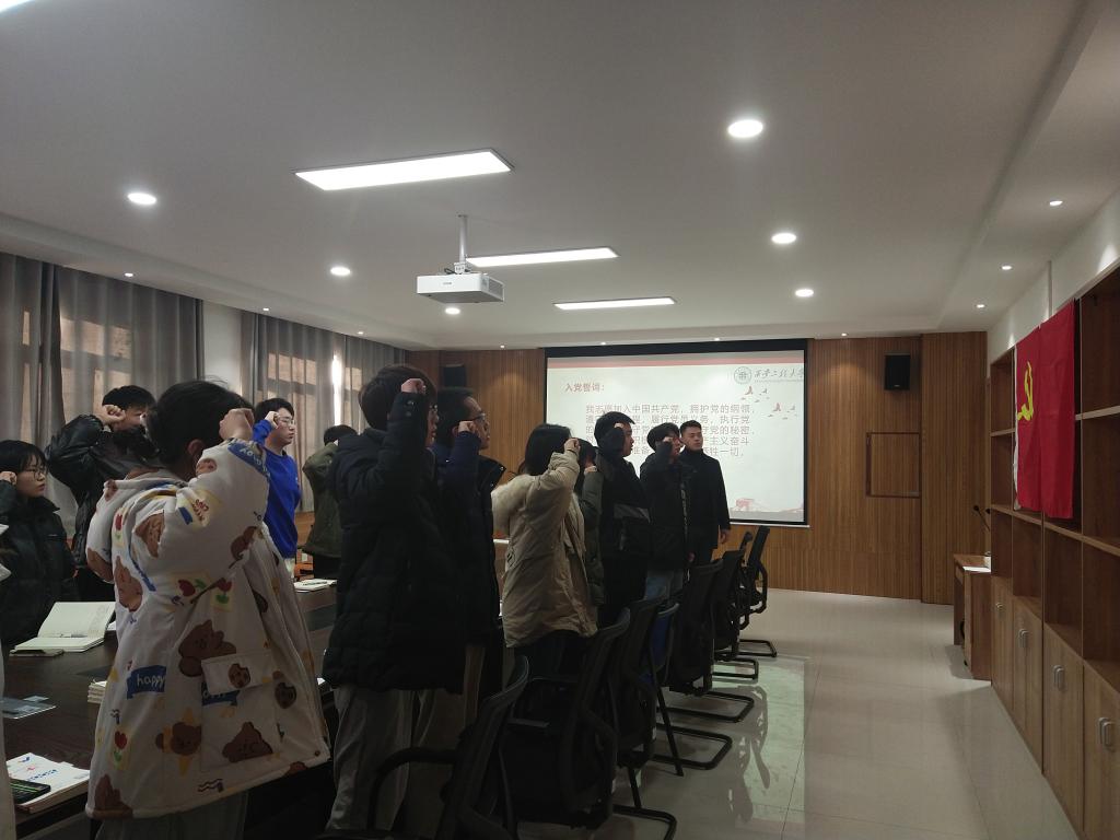 会议第四项,组织委员陈晓乾带领全体党员重温入党誓词,会议在庄严的气氛中落下帷幕。