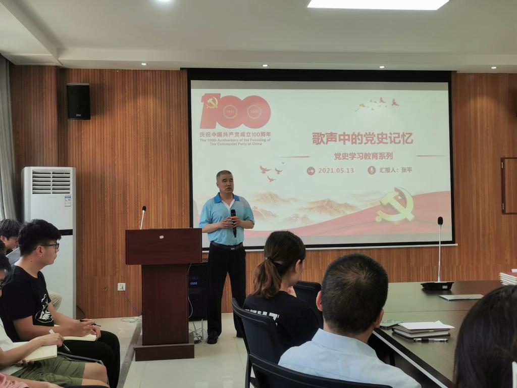 为深入开展党史学习教育,引导师生党员厚植爱党、爱国情感,营造浓厚学习氛围,公司于5月13日在笃行楼507会议室开展《歌声中的党史记忆》主题教育活动。报告由离退休工作办公室党委书记张平老师主讲,公司党委书记李建学、部分师生党员代表共同参与。