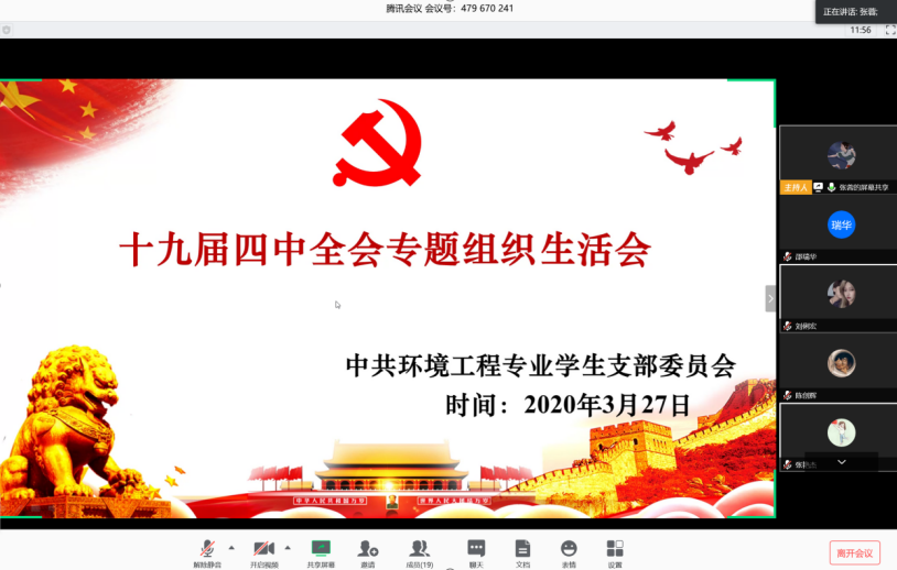 2020年3月27日下午16时,环境工程专业员工党支部以视频会议形式召开了十九届四中全会专题组织生活会,党支部20名党员参加了学习讨论。