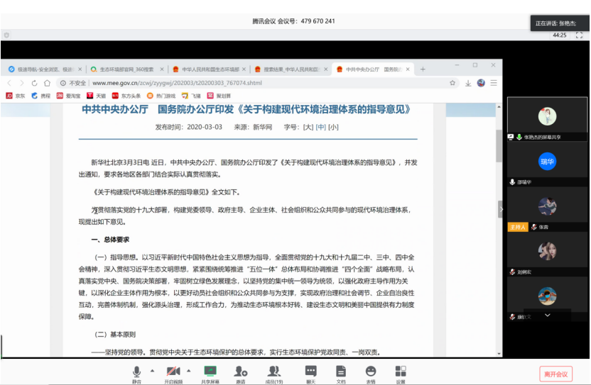 会议分为三个部分,第一部分是学习十九届四中全会基本概况;第二部分观看“如何准确领会十九届四中全会精神”视频;第三部分结合专业特点学习了近日由中共中央办公厅、国务院办公厅印发的《关于构建现代环境治理体系的指导意见》。