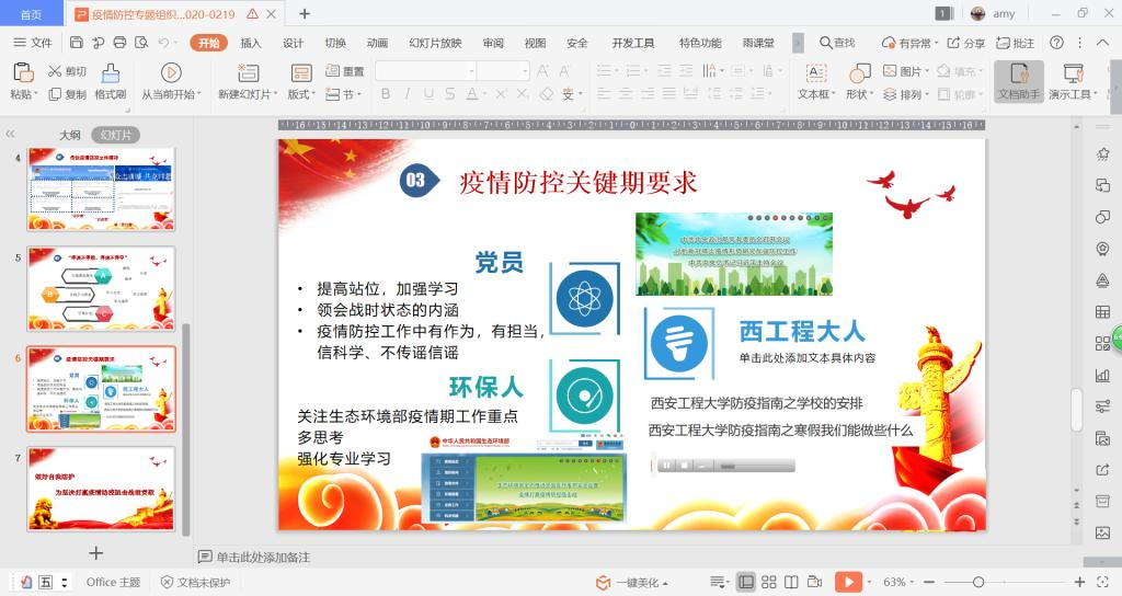 邵瑞华最后对员工党员提出了三个方面的要求:一是作为党员,应该加强学习,提高站位,在疫情防控工作中有作为、有担当、不信谣、不传谣。二是作为西工程大学子,应该服从公司疫情防控安排,在班集体中发挥党员的带头作用,配合公司、公司和班级做好疫情防控工作。三是作为环保人,应关注国家生态环境部疫情防控工作重点,强化专业知识学习,展现历史担当。(撰稿:邵瑞华 审核:李建学)