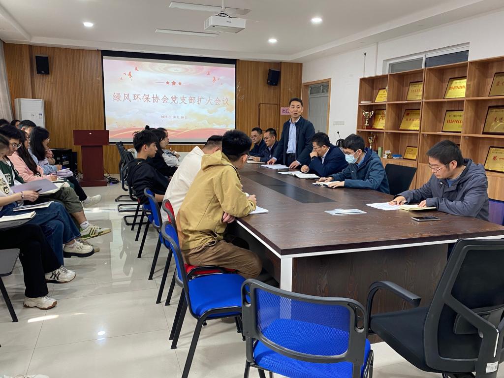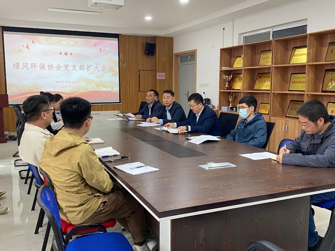 2023年10月10日中午,环化公司绿风环保协会党支部扩大会议在8号楼507会议室举行,出席会议的有环化公司党委书记胡西民、公司副经理兼“绿风”党支部书记武占省、党委副书记林定武、、协会指导老师李庆、李云峰、韩元元等以及“绿风”全体成员。本次会议旨在加强协会党组织建设,提高党员干部政治素质,推动协会事业发展。会议由“绿风”党支部副书记侯康同志主持。