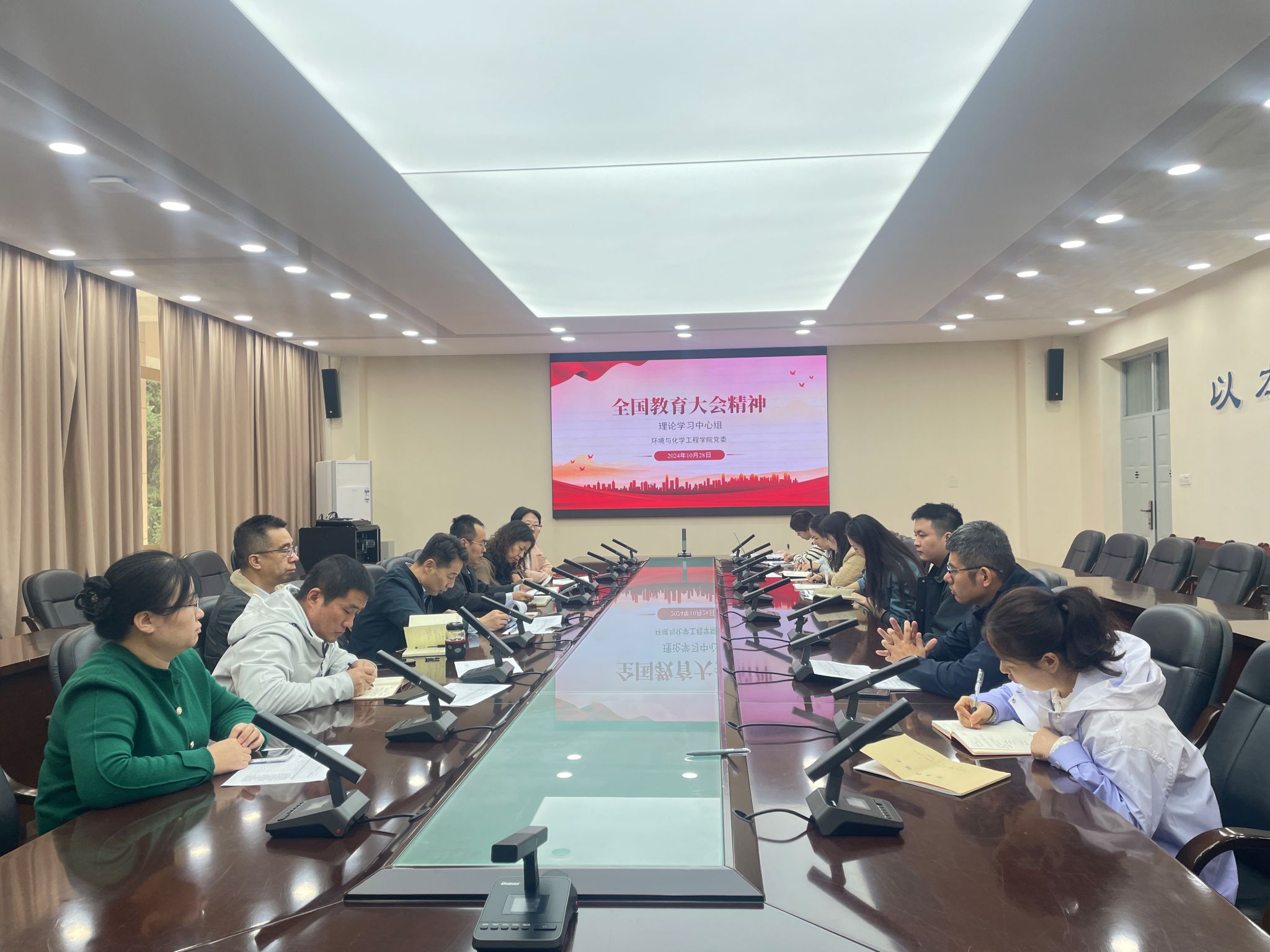 2024年10月28日,环化公司党委于A栋教学楼104会议室召开党委理论学习中心组(扩大)会议,专题学习习近平总书记在2024年全国教育大会上的重要讲话精神。公司党委书记胡西民主持会议,全体中心组成员及部分教师代表参加了此次学习会议。