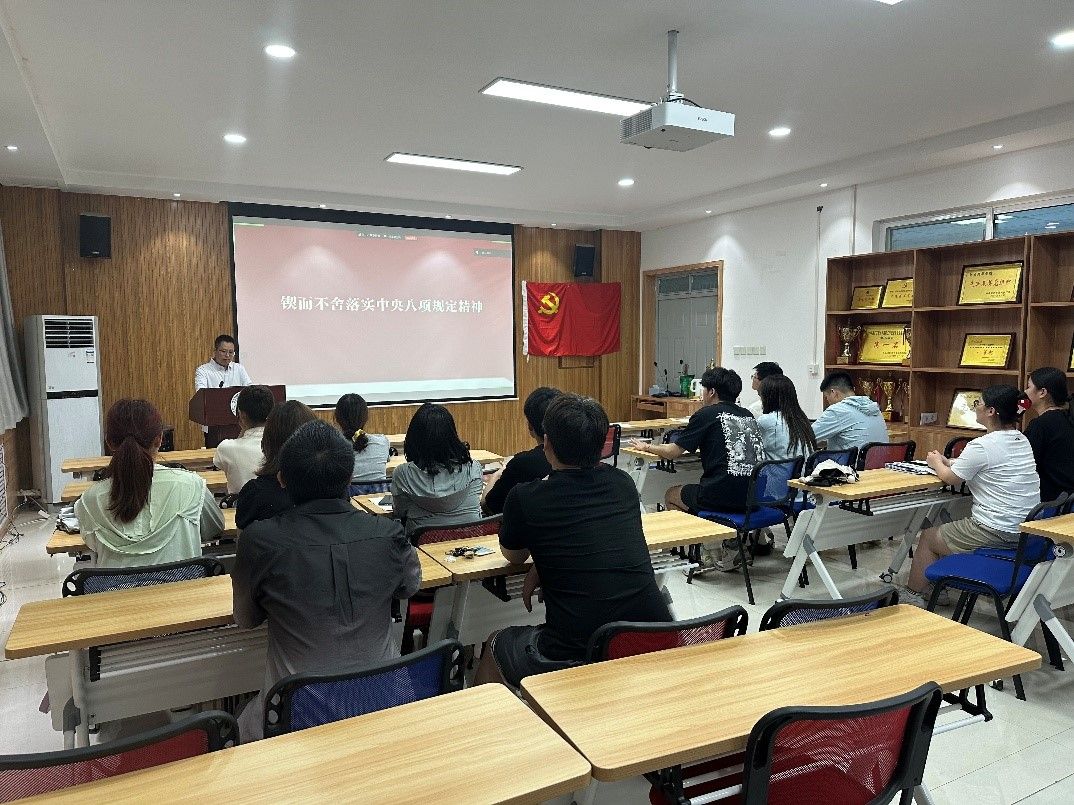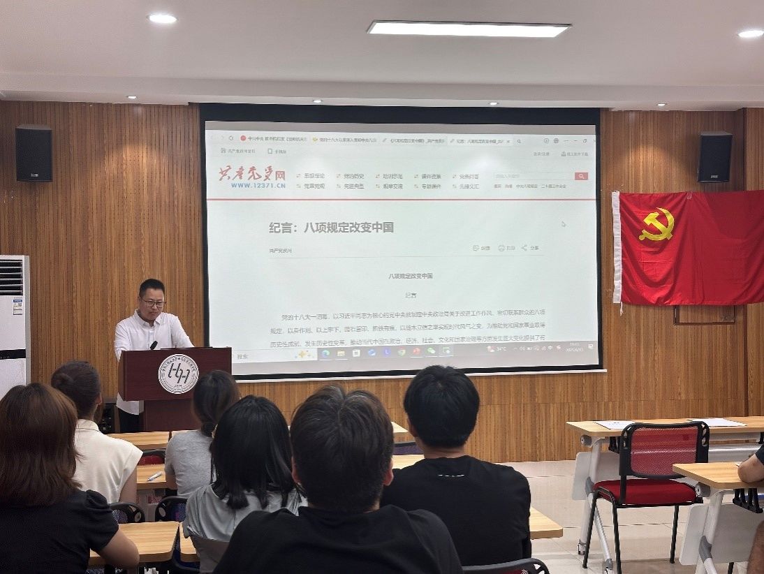 为深入贯彻中央八项规定精神学习教育,切实增强支部全体党员的纪律意识、规矩意识和廉洁自律意识,6月13日下午,生物工程专业员工党支部在环化楼507会议室成功召开深入贯彻中央八项规定精神学习教育专题学习会。会议由支部书记刘啸尘主持,支部全体党员共同参加。