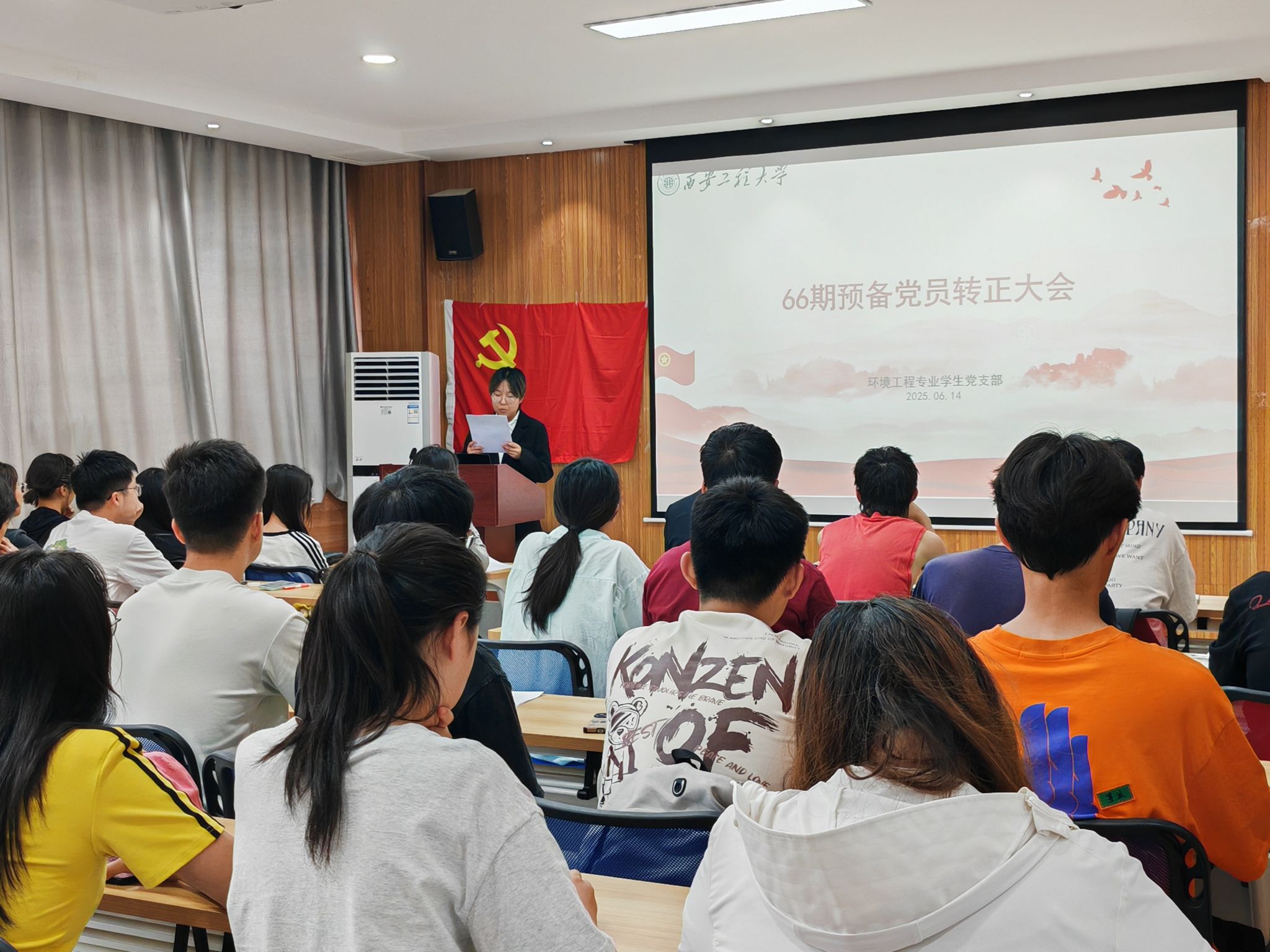 2025年6月14日,环化公司环工专业员工党支部在环化楼507会议室召开预备党员接收及转正大会,讨论发展12名新党员及10名预备党员转正事宜。会议由党支部书记任子瑜主持,支部全体党员参加。