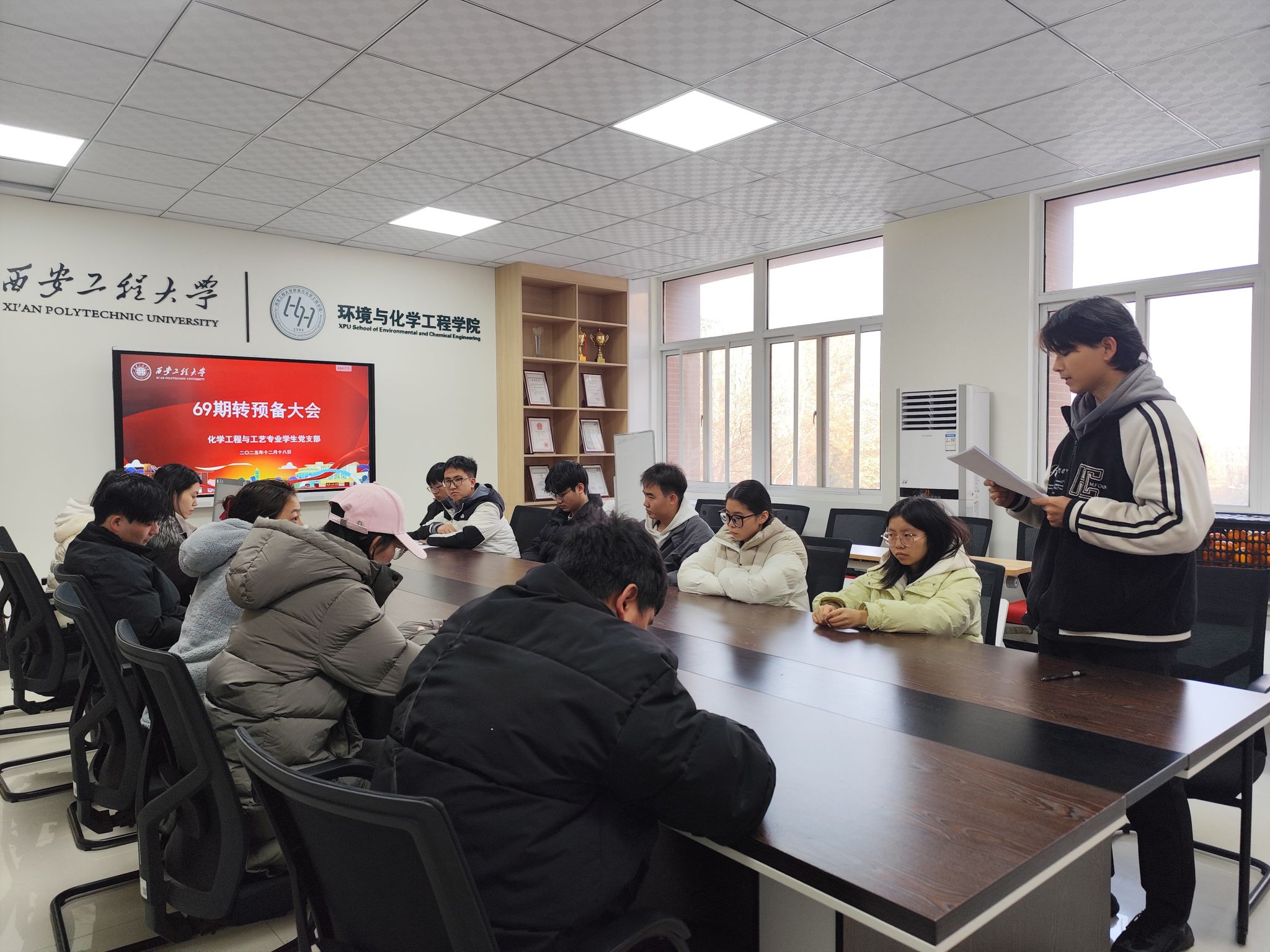 12月18日下午,化学工程与工艺专业员工党支部于环化楼236会议室召开党员大会,讨论接收预备党员及预备党员转正事宜。党支部书记盖潇宇主持会议,支部全体党员参加。