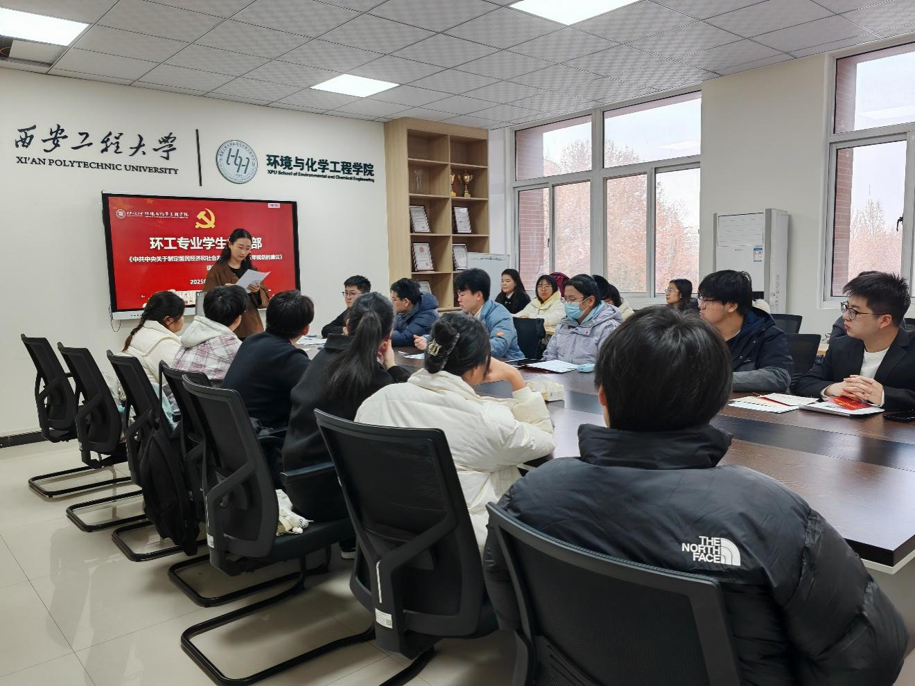 学习会上,全体党员首先集中观看了“十五五”规划建议说明专题解读视频,系统了解了规划制定的时代背景、战略意图与整体架构。在随后的交流研讨环节,支部党员紧密结合环境工程专业特点与个人学习体会,对《说明》内容进行了深入探讨。