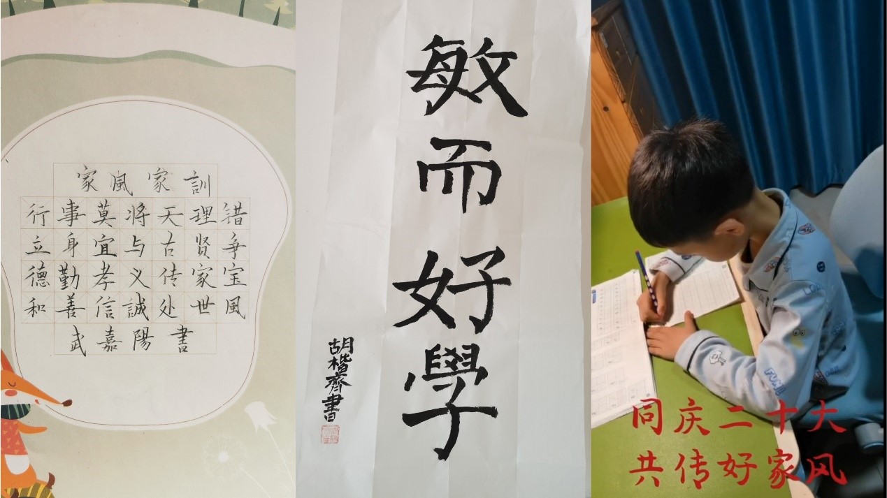全院广大教职工及家属积极参加,内容精彩纷呈,形式丰富多彩。有的家庭全员精神饱满,共同朗读家风颂;有的引领子女一字一句,共读传统格言警句;有中小员工朝气蓬勃,诵读经典诗篇;有秀俊端庄的家风家训书法作品;有家庭温馨幸福的精彩瞬间留影。