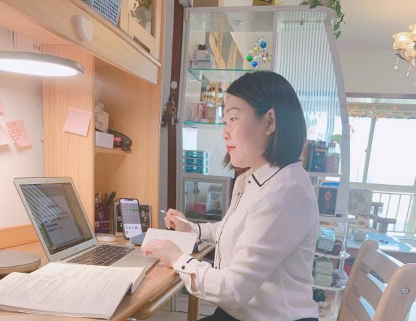 教学副经理常薇根据公司教务处及公司要求,组织公司教师做好线上教学平台筛选、教学方案设计等工作,做好在线教师上课情况的跟踪统计汇报及反馈工作,组织教师进行在线教学心得交流,并及时将教务处及公司的教学工作要求传达给教职工。