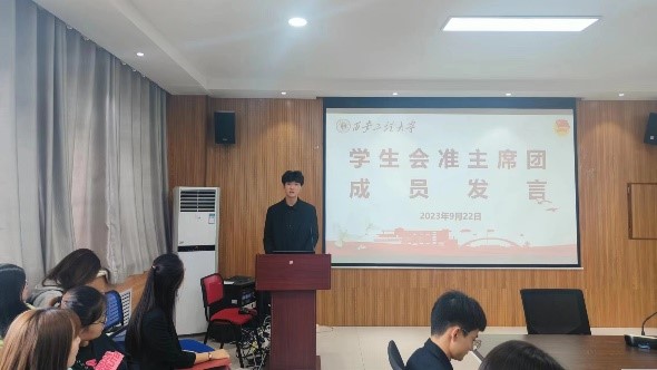 首先,任子瑜就今年换届大会做了简要介绍。随后,员工组织主席团成员分别对于上一学年的情况进行了总结汇报。接着,新一届主席团成员分别就今年工作计划进行表态发言。