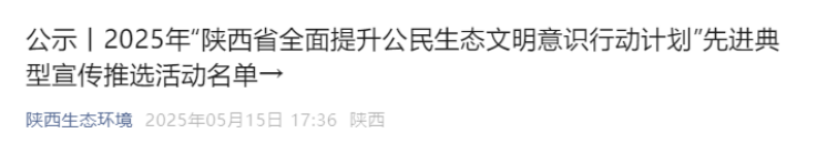 近日,在由省生态环境厅、省委社会工作部、省文明办、团省委、省妇联共同主办的“美丽中国,我是行动者”2025年“陕西省全面提升公民生态文明意识行动计划”先进典型宣传推选活动中,公司贾天昱申报的《“青河守望”生态清洁小流域治理志愿服务》,获评“优秀公众参与案例——公司生态环境教育”,系全省高校唯一入选案例。由省生态环境厅、省教育厅、省水利厅、省林业局、团省委和省作协主办的陕西省第六届生态文学艺术创作大赛中,公司荣获优秀组织奖。