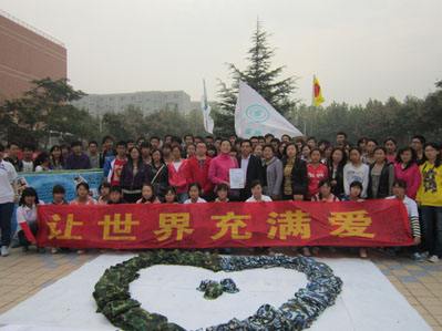 随后,校团委副书记王晓先代表“绿风”环保协会接受了陕西环保沙龙和“爱暖人间”颁发了的此次活动的先进组织奖。与会嘉宾向环化公司张盼等同学颁发了本次活动的优秀个人奖。最后由双方代表在捐赠牌上签字。