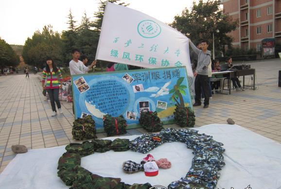 10月16日,公司“绿风”环保协会在临潼校区中心广场举办了军装捐赠活动。活动呼吁刚刚结束军训不久的新生,将自己不再使用的军训服装捐赠给贫困地区的孩子和一些急需帮助的人们,呼吁在校员工以力所能及的方式为贫困山区奉献爱心,通过实际行动帮助更多的人。