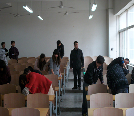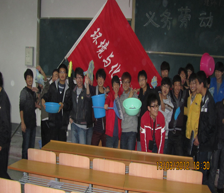 根据员工处文件要求,公司开展了“清理课桌文化、构建和谐校园”活动。辅导员林定武带领员工开展了此次活动。整个活动进行的有条不紊,同学们表现出了极高的热情。截至3月14日中午,公司已清理完临潼校区D栋教学楼1-2楼所有教室。经公司纠察队检查,各班清理任务完成得很好,充分体现了公司“从我做起,从日常生活做起,从身边小事做起,从现在做起”的活动宗旨。