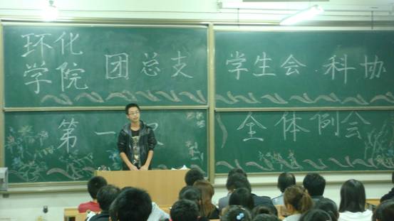 会中团总支副书记史良提到要敢于表达自己,让别人认识到自己,并且要学会倾听。科协两位副主席介绍了各项活动,例如:119防火知识讲座、希望杯、挑战杯等。员工会主席涂强结合自身向新会员传达了一种“竭尽自我,服务环化”的精神,将大会的气氛推向高潮。最后,由11级新会员代表发言。