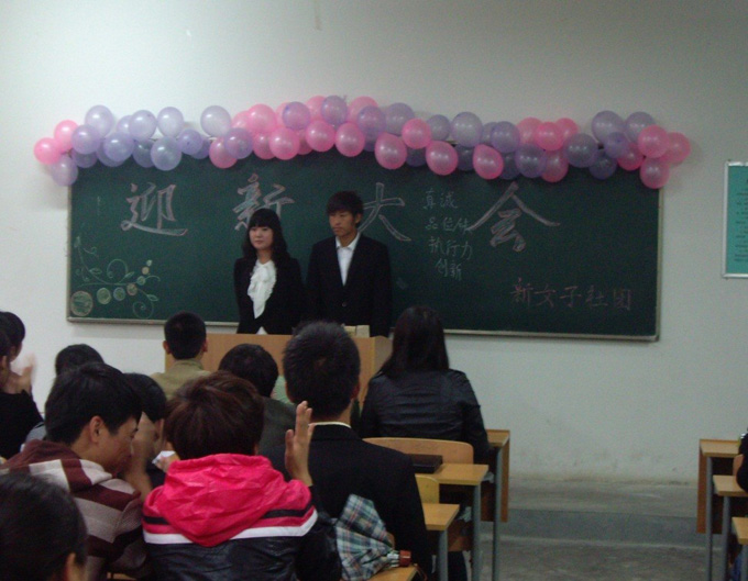 2011年9月28日下午四点新女子社团迎接新成员大会拉开序幕。大会历时一个半小时,11级干事朝气蓬勃,激情澎湃。其间,新女子社团指导老师林定武发表热情洋溢讲话,他指出,员工不管是参加社团还是学习要有明确的目标,这样才能使老员工活充实圆满,林老师为整个社团和2011级新干事指明了大学学习和生活的目标。新女子社团会长李佳囡和上届会长邱君向新干事分享了社团活动的点点滴滴,同学们倍受鼓舞。新生代表乔胜发言,慷慨激昂,让我们看到了充满激情和自信的11级新干事。同时,各部代表对本部门工作情况进行了详细的介绍。最后,在同学们的热烈掌声中本期迎大会圆满新束。