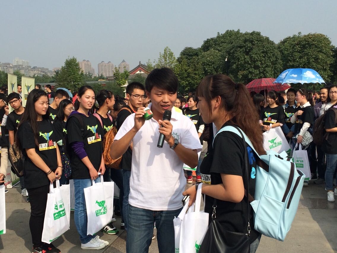 10月1日,在西安大雁塔南广场,随着曲江文旅,西安外国语大学的志愿者们携手集结,为广大游客发放上千份环保垃圾袋和矿泉水,生活微行动之大雁塔站正式启动。