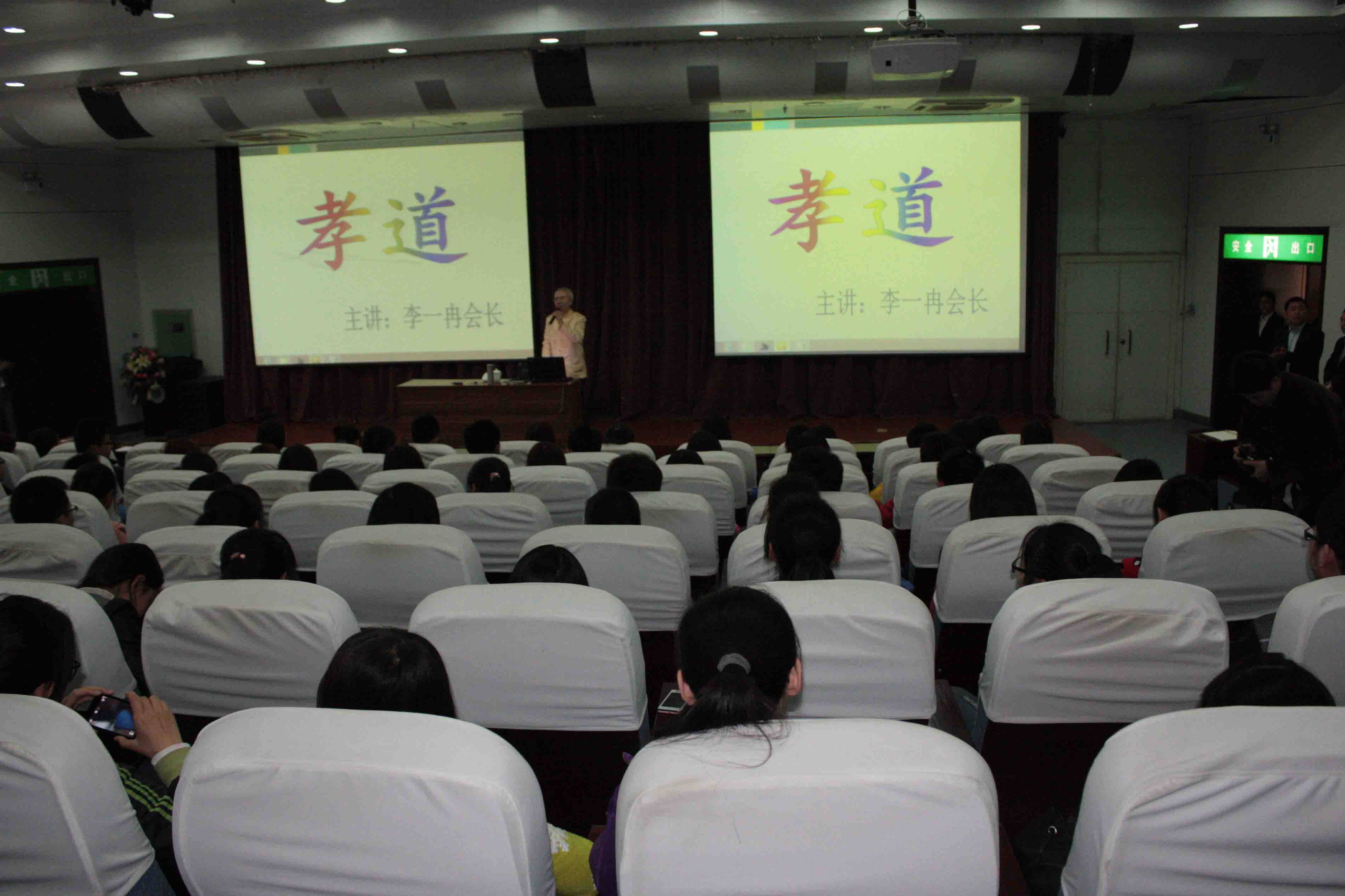 讲座上,李一冉先生以《百善孝为先》为题,通过实例、视频资料和现场互动等不同形式,从孝义真义、孝之感恩、孝的原理、孝的实践和孝之忏悔五个方面讲解孝道,提醒大家孝乃天性,孝顺父母不容等待。