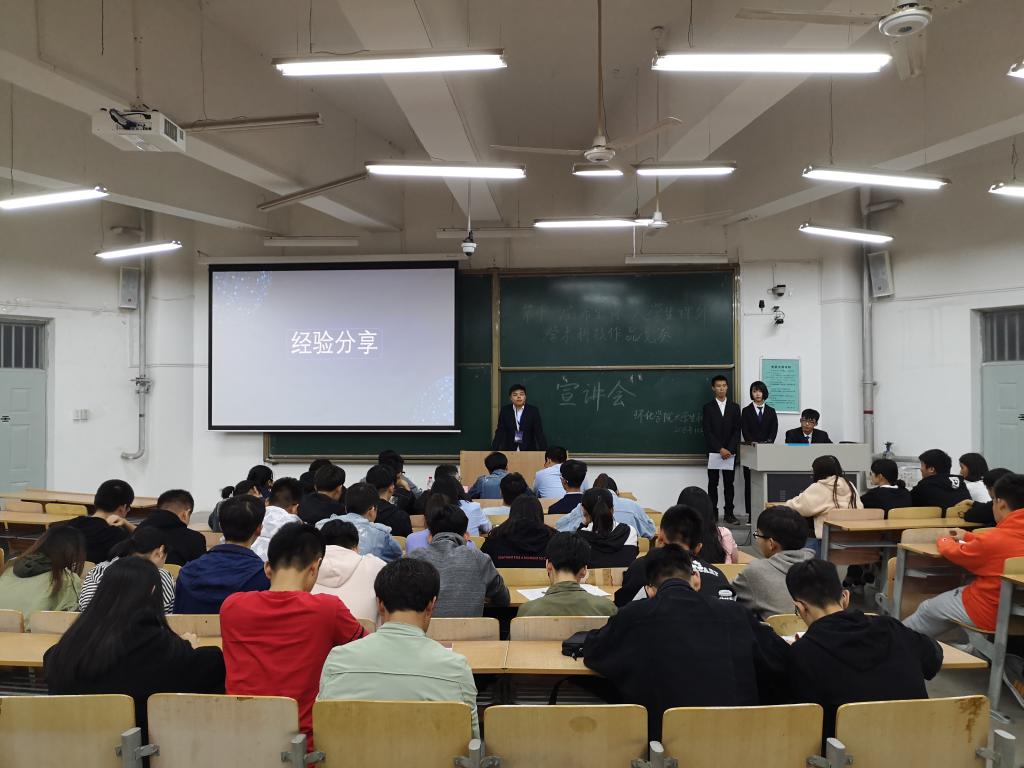 刘婧在致辞中结合自身参与“希望杯”的经历和收获,希望同学们能够积极组队参加,为自身积累经验,进一步提升创新意识和创新能力。随后吴章镇对“希望杯”的基本概况、宣讲会的主要内容和目的向大家做了介绍,并着重指出参加“希望杯”的意义;罗元分享了部分优秀案例并给大家讲述了“希望杯”的路演方式和技巧;陈磊将他的创业经历、比赛经验通过风趣幽默的方式与大家分享;童永宏就如何选题、如何立项和答辩应对技巧三方面为大家做了详细讲解。