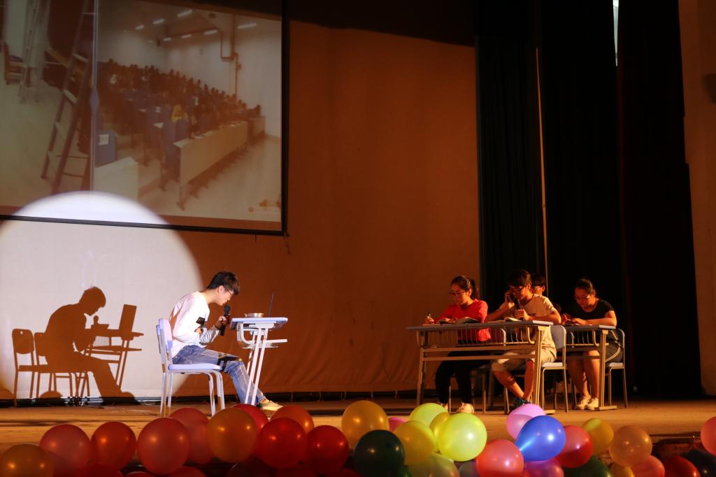 19点整,四位主持人宣布心理情景剧大赛正式开始,首先,由袁群老师为大赛致辞并介绍出席大赛的各位嘉宾老师。紧接着,各专业按照表演顺序为观众带来了7场精彩的心理情景剧表演,它们分别为《墨镜,墨镜,告诉我》、《最初的梦想》《时分》、《蜕变》、《上帝视角万花筒》、《抬头》、《谁的青春不迷茫》。情景剧内容贴近老员工活,反映了老员工之间普遍存在的学业问题、个人情感、沉迷网络、人际交往等突出问题。经过评委的综合评分,环境科学专业的心理情景剧《墨镜,墨镜,告诉我》脱颖而出,荣获一等奖。最后,嘉宾老师们为团体奖和个人奖获得者颁发证书,并由王春元老师对大赛做出总结讲话,宣布大赛圆满结束。