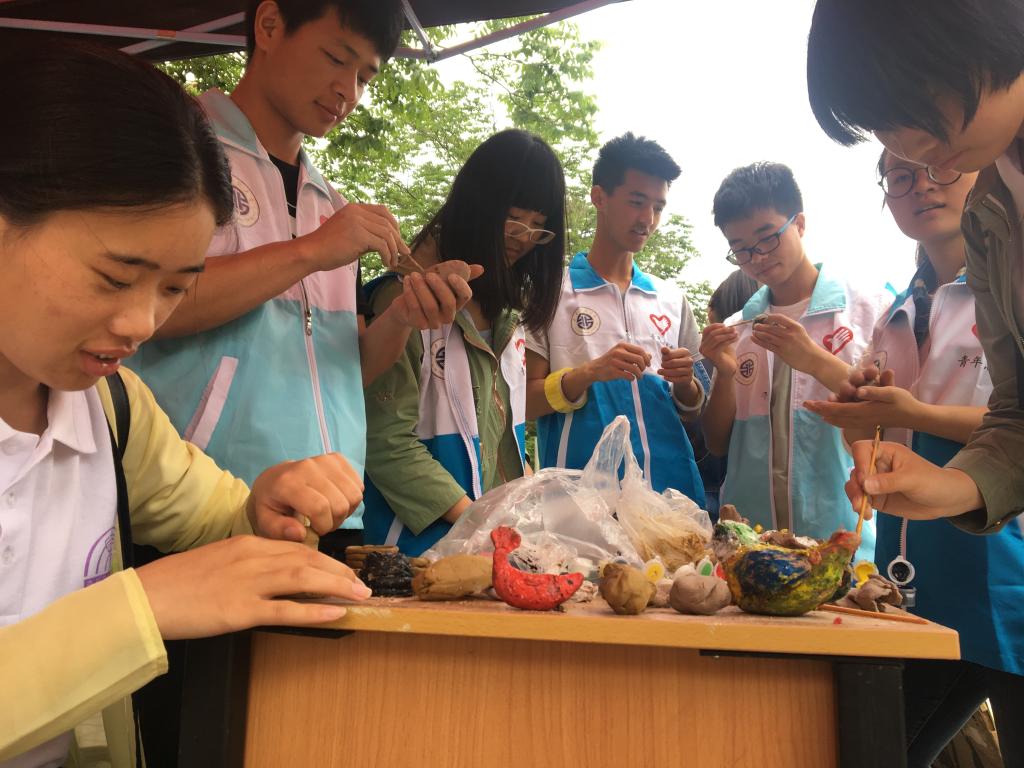 2.“我型我塑”泥塑体验。由负责活动的志愿者们进行说明,大家用陶泥塑造自己喜欢的器物,并染上精美的颜色。我们将于5月19日在中心广场展出泥塑活动中的创意作品并进行评选,对评选前列的送出奖品。让大家在陶塑过程中体会半坡时期制陶,染色的过程,领悟半坡先民的智慧。