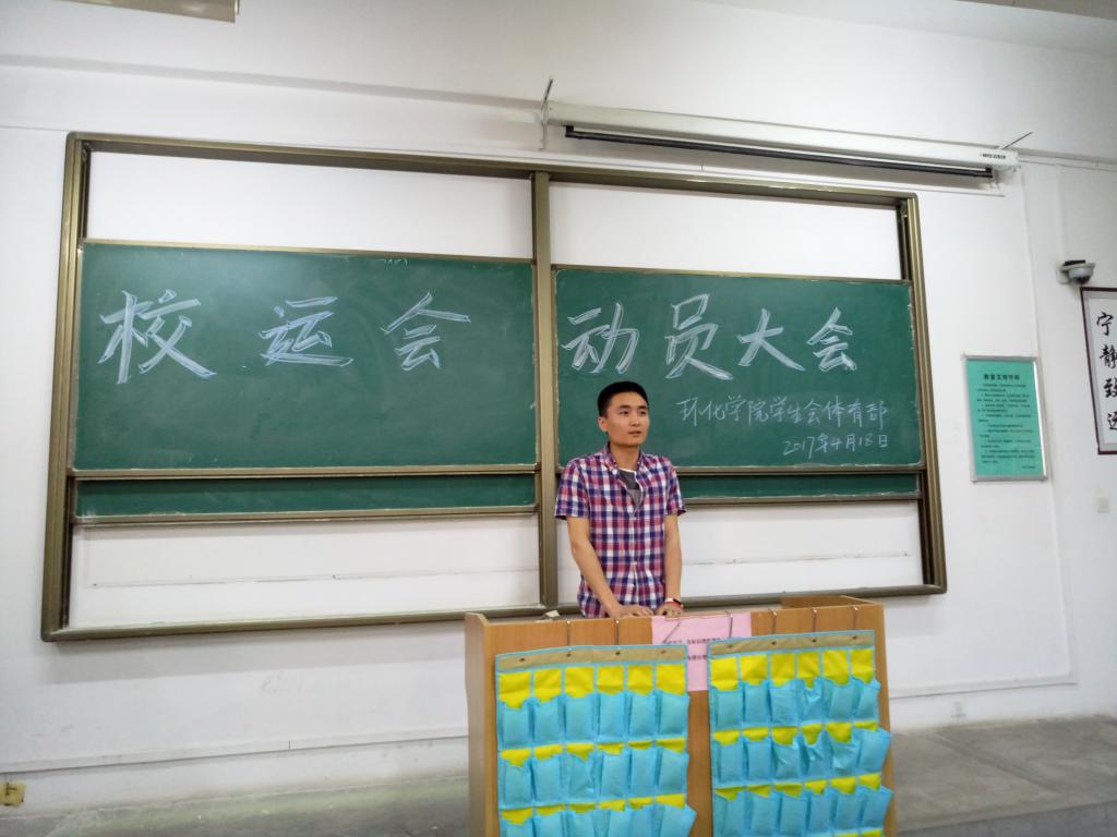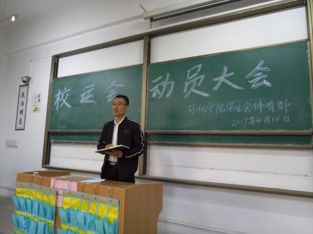 2017年4月18日18:00,环化公司校运动会动员大会在临潼校区A栋226教室举行。参加本次会议的有16级辅导员王春元、员工会主席团、员工会体育部以及参赛运动员。