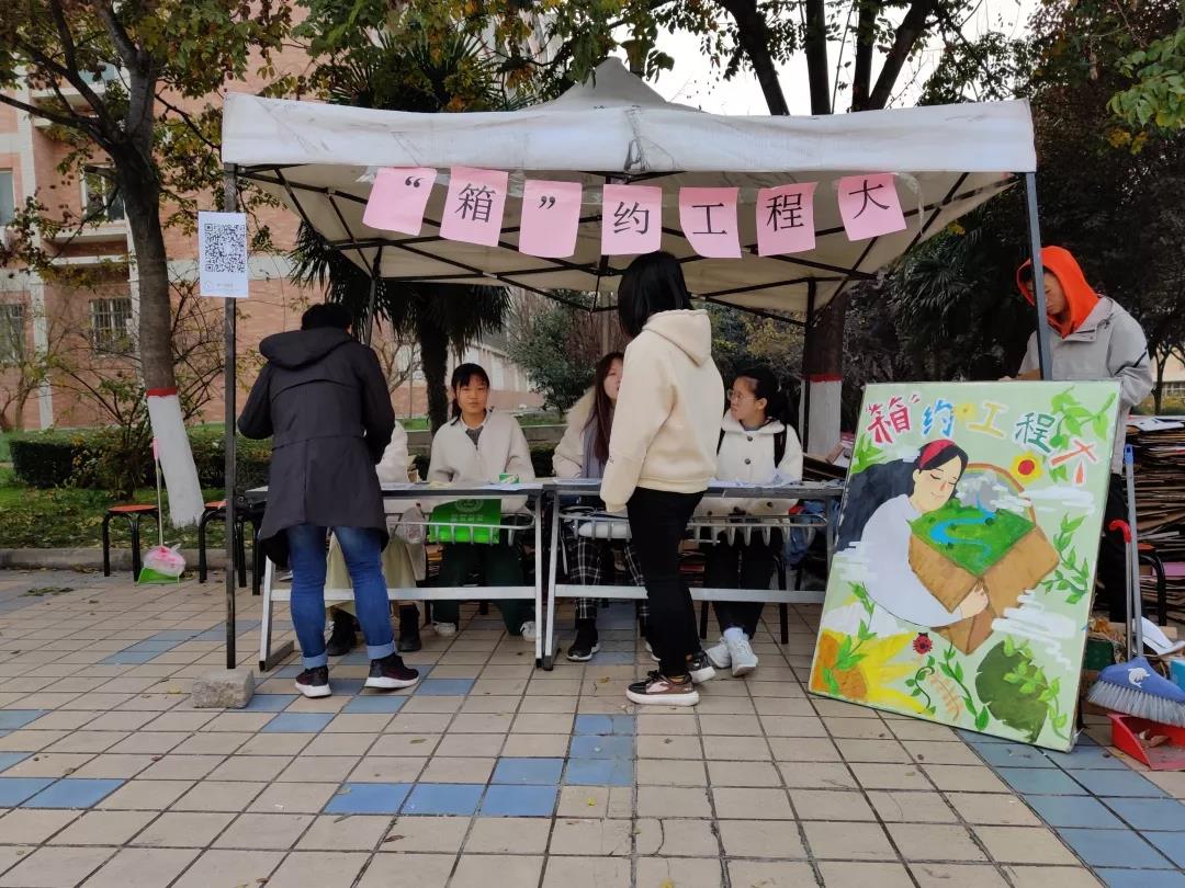 为培养同学们废物再利用的意识,2019年11月21日至11月22日,2026世界杯官方合作网站绿风环保协会携手菜鸟驿站于中心广场举行“箱”约工程大活动。绿风环保协会组织此次活动。