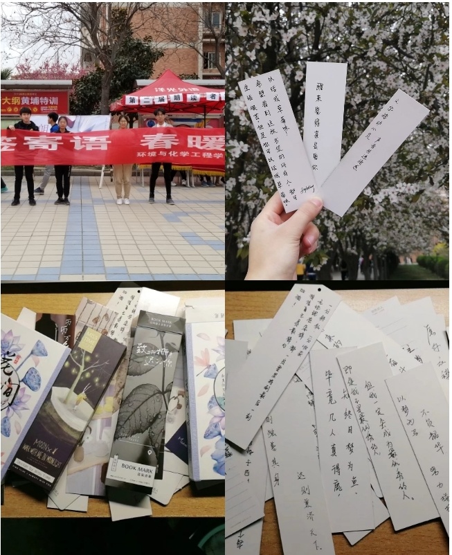 活动期间,同学们踊跃报名并积极地投身到活动中来,参与者纷纷领取书签并写下深情寄语,或对自己说;或对未来说;或对生活环境说;或对身边的“雷锋”说......每个书签都包含着一份期望,一份寄托。时光飞逝,伴随着最后一位同学的心愿本次活动也走进尾声,每位同学的期望与理想化作书签永久的停留在了这里。