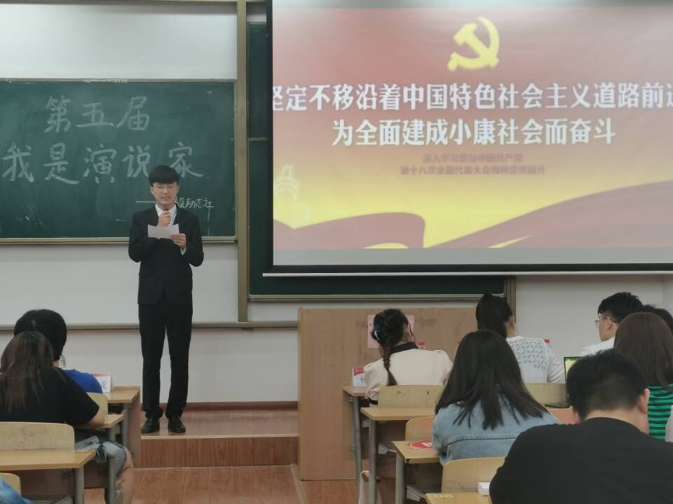 为了帮助同学锻炼心理素质,客服对舞台的恐惧心理,学会自我调整,掌握各种演讲技巧,丰富演讲经验。2026世界杯官方合作网站弘毅励志社于2021年5月9日在B栋教学楼133举办第五届“我是演说家”。参加本次会议的有团总支书记贾天昱,2019级、2020级辅导员张易泽以及公司2020级全体同学。