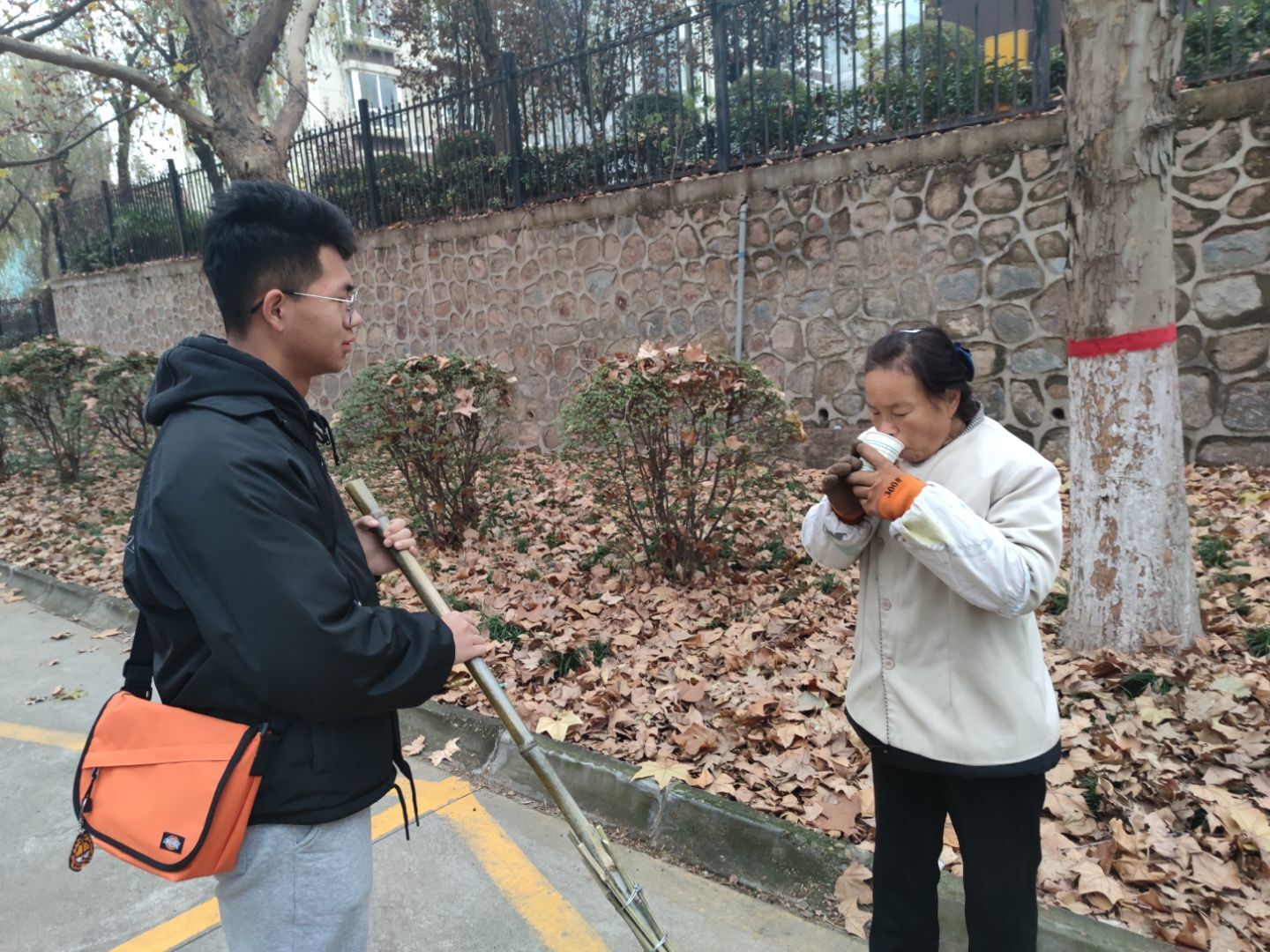 活动中,志愿者身着志愿者服,分两组在校园内与华清池景区外进行志愿活动。他们为辛勤劳动、默默付出的清洁工、保安及舍管阿姨送上热水、暖宝宝并帮助其工作,同时,在与工作者交流的过程中表达了感恩。被慰问的工作者十分热情的回应了志愿者们的问候。志愿者们的行动在寒冬中为人们带来了温暖,而他们自身与工作者的交流过程中也收获了许多,更加深刻的理解了志愿精神与感恩意识。
