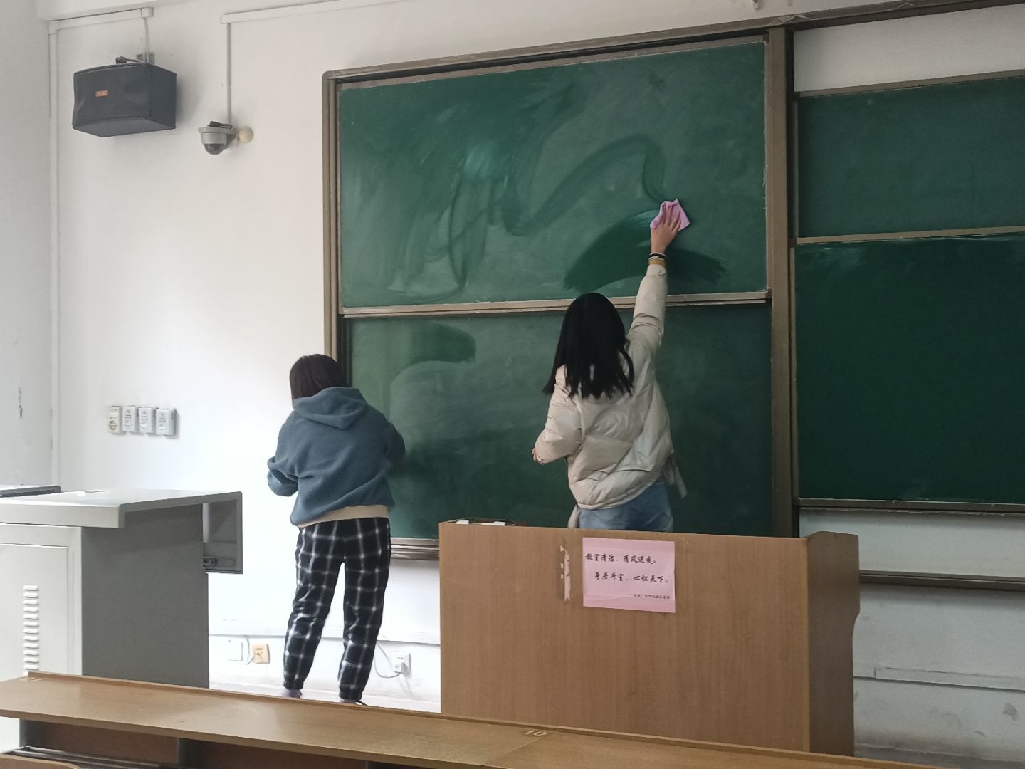 2020年11月26日,环化公司员工会青分队主持开展了义务打扫教室活动。参与人员为青分队全体成员及全体班级志愿者。