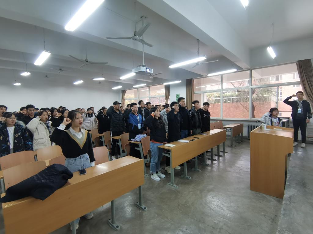 会议伊始,杨瑞楠介绍了本次会议的主要流程,并且宣讲了习近平总书记对志愿者的寄语。随后进行各代表发言,教师代表贾天昱表达了对志愿者们的支持和鼓励。张润泽、张振华和苟成龙提出,各位班级志愿者及青分队的成员们应当更加清楚的了解志愿者所应该具有的品质和精神。大会最后,各位志愿者齐唱志愿者之歌,并进行宣誓。志愿者们用歌声和宣誓声表达出自己对志愿服务的热爱,展现了自己想成为一名合格志愿者的决心。